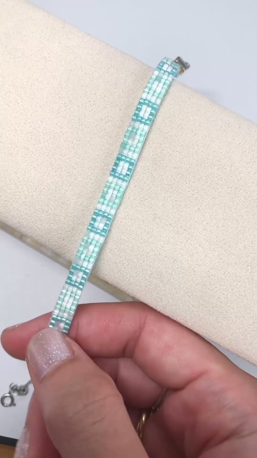 Made of: Japanese glass beads. All metal parts are water resistant, suitable for sensitive skin and made to last. Thread is very durable, does not get cut by scissors at once