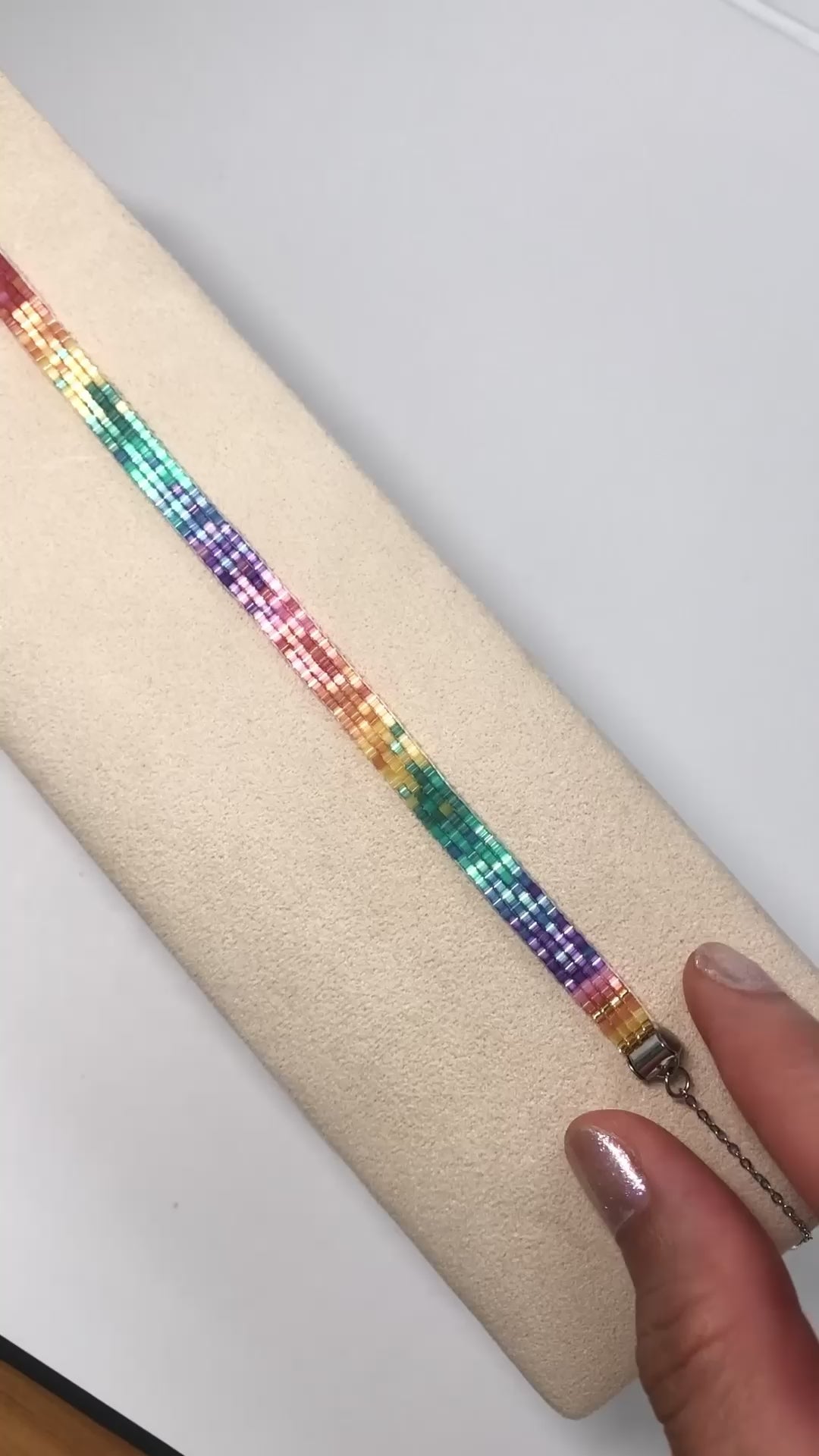 Made of: Japanese glass beads. All metal parts are water resistant, suitable for sensitive skin and made to last. Thread is very durable, does not get cut by scissors at once